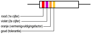 C Voorbeeld: Weerstand van 27000 ohm met een tolerantie van ±5%